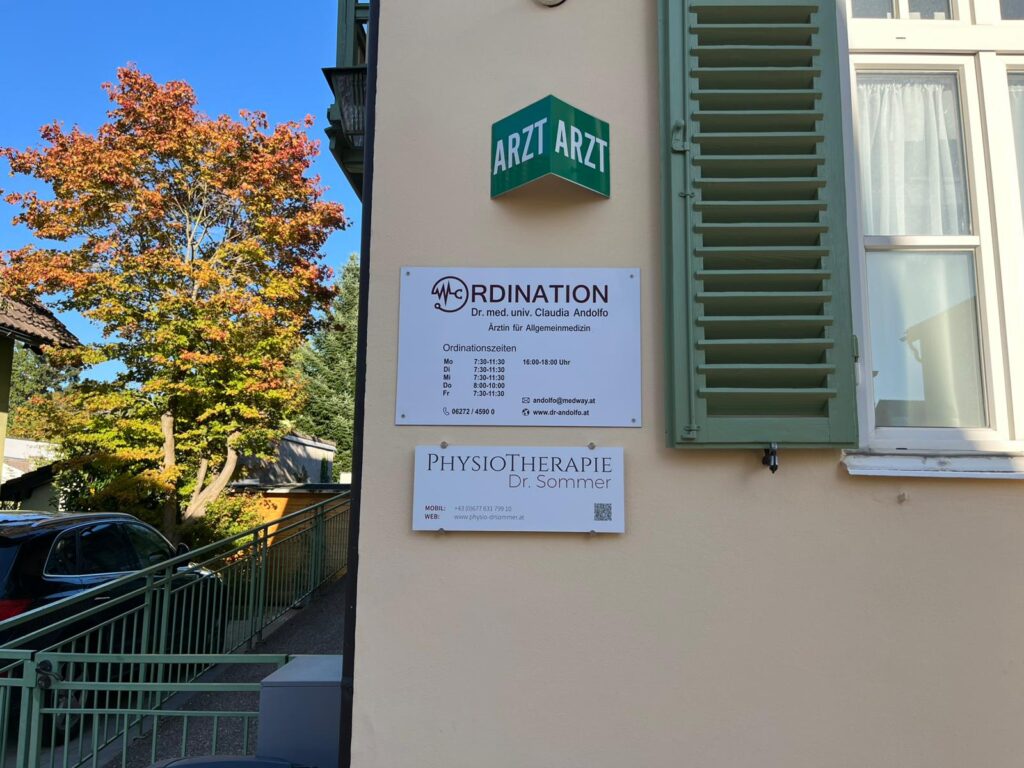 Bitte Läuten, wenn die Ordination geschlossen ist und Sie einen Termin zur Physiotherapie haben. Der witterungsgeschützte Eingangsbereich ist jedenfalls geöffnet.